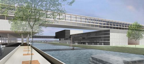 Seulement, le bâtiment proposé ne s’arrête pas seulement à la question du franchissement mais se propose de connecter au centre commercial un programme culturel en rapport avec la Cité du Cinéma. Il s’agirait donc de transformer le centre commercial en pôle culturel.