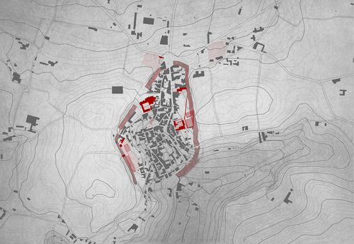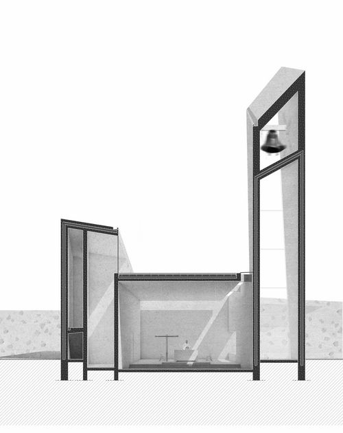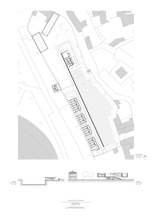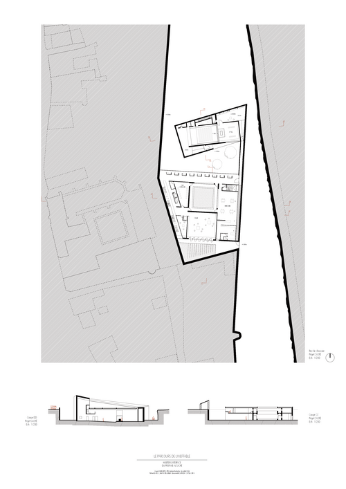 Le projet est un centre de retraite spirituelle situé à Saint-Émilion. Afin de requalifier l'interface entre la ville et ses vignes, le projet vient redéfinir la douve et le rempart par un travail d'acuponcture, par la mise en dialogue de deux sites, en fabriquant un parcours. Le caractère sacré et spirituel du projet renvoie et revalorise le patrimoine historique de la cité monastique de Saint-Émilion. Un édifice "Profane" et bâtiment "Sacré" se répondent dans la ville, bénéficiant de la forme en amphithéâtre de la cité. Tous deux travaillent la question du mur. Si l'édifice "profane" est un mur horizontal s'étendant jusqu'à l'horizon, l'édifice "sacré" et un mur ascendant s'enroulant sur lui même, fabriquant une intériorité. L'édifice "profane" accueille un centre d'hébergement pour les pèlerins et retraitants et s'ouvre sur le paysage et la ville, revalorisant la qualité du rempart. L'édifice "sacré" accueille un monastère et une chapelle et s'attache à revaloriser la douve, tout en bénéficiant d'une situation encaissée propice au recueillement. Le parcours fait le lien entre les deux lieux, la marche, si chère aux pèlerins et au moines, afin de conduire au recueillement, à la méditation. Le projet est un dialogue, un dialogue entre ombre et lumière, entre profane et sacré, entre horizontale et verticale, entre ville et vignes.