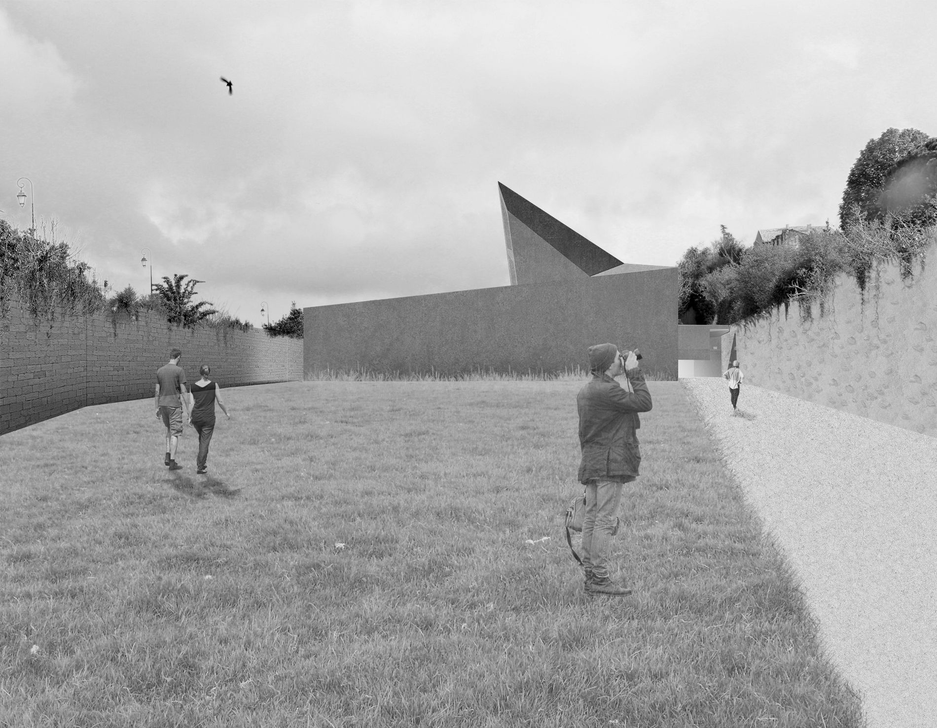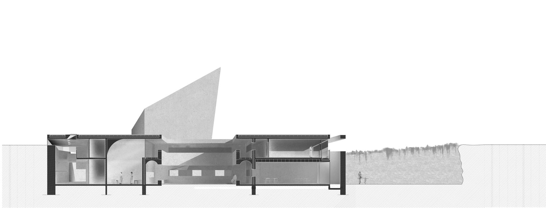 Le projet est un centre de retraite spirituelle situé à Saint-Émilion. Afin de requalifier l'interface entre la ville et ses vignes, le projet vient redéfinir la douve et le rempart par un travail d'acuponcture, par la mise en dialogue de deux sites, en fabriquant un parcours. Le caractère sacré et spirituel du projet renvoie et revalorise le patrimoine historique de la cité monastique de Saint-Émilion. Un édifice "Profane" et bâtiment "Sacré" se répondent dans la ville, bénéficiant de la forme en amphithéâtre de la cité. Tous deux travaillent la question du mur. Si l'édifice "profane" est un mur horizontal s'étendant jusqu'à l'horizon, l'édifice "sacré" et un mur ascendant s'enroulant sur lui même, fabriquant une intériorité. L'édifice "profane" accueille un centre d'hébergement pour les pèlerins et retraitants et s'ouvre sur le paysage et la ville, revalorisant la qualité du rempart. L'édifice "sacré" accueille un monastère et une chapelle et s'attache à revaloriser la douve, tout en bénéficiant d'une situation encaissée propice au recueillement. Le parcours fait le lien entre les deux lieux, la marche, si chère aux pèlerins et au moines, afin de conduire au recueillement, à la méditation. Le projet est un dialogue, un dialogue entre ombre et lumière, entre profane et sacré, entre horizontale et verticale, entre ville et vignes.