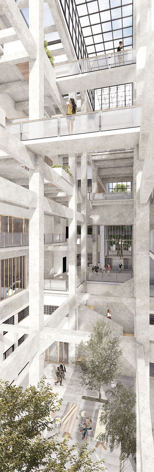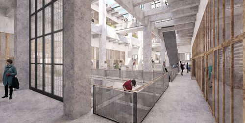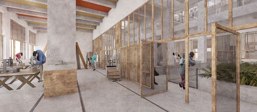 Le poste de transformation devient alors "LE TRANSFO" : un transformateur solidaire dédié à l'artisanat d'art et l'entraide. Le vide central du bâtiment apporte la lumière et fédère les espaces liées à l'artisanat d'art qui y sont rassemblés (création, communication, vente, juridiction...). Le lieu, ouvert au public est revitalisé et conserve sa fonction machine. Il valorise les métiers d'artisanat d'art tout en créant vocations et solidarité.