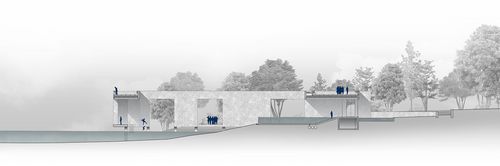 Pensé comme une enceinte, le bâtiment rejette l’idée d’un système proliférant vers le milieu naturel pour contenir la vie de cet établissement public en son sein. Commence alors un jeu de transparences et de porosités pour révéler la richesse de l’environnement.