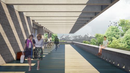Une promenade ponctuée de vestiaires, commerces et lieux de contemplation révèle les sites qu’elle traverse et relie enfin la ville haute et la rivière. La promenade franchit les multiples obstacles entre Pau et le Gave pour déboucher sur les bains publics.