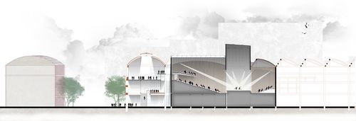 Apporter un élément contemporain dans un tissu urbain qui parle d'histoire. L'idée du projet était de redynamiser le site. Pour se faire, j'ai décidé de m'insérer entre deux différents systèmes structurels de deux types de halles dans les anciennes messageries de Gare de Lyon. Cette extrusion et l'insertion d'un nouveau volume permet de rendre ce dernier autonome. En essayant de préserver l’identité du bâtiment, cette salle de spectacle marque l’accès aux deux axes urbains importants dessinés dans la stratégie urbaine (rue commerçante et promenade plantée).