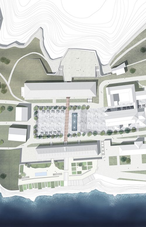 Notre projet architectural s’occupe de la réhabilitation des deux casernes militaires. Deux extensions aux écritures plus contemporaines sont ajoutées aux bâtiments existants. La caserne génoise, inscrite aux monuments historiques, accueillera une école hôtelière. Le programme s’appuie sur l’activité touristique de la ville et vise à insuffler à celle-ci un nouveau dynamisme grâce à l’arrivée des étudiants. La caserne française intégrera le nouveau centre culturel de Bonifacio. Cette nouvelle structure comprendra une salle de concert, un espace d’exposition et un internat.