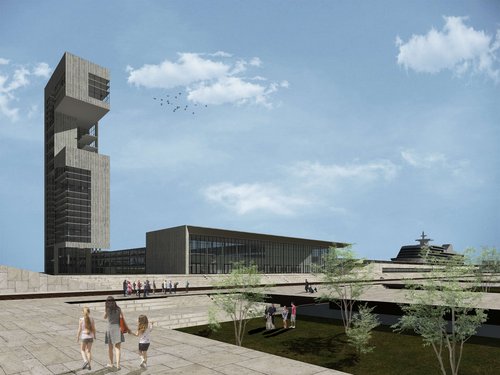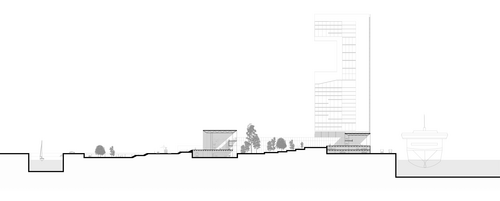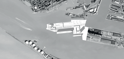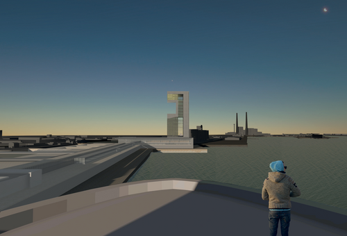 Par ailleurs, nous souhaitons à travers cet édifice, à la fois signaler le site, et intégrer ce territoire comme faisant partie de la ville. Par une forte verticalité, l’édifice répond à la ville et l’intègre simultanément. De plus, il élabore le nouveau paysage du port et la limite de la ville.