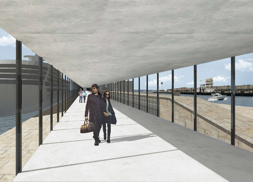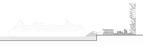Le projet est une gare maritime, accueillant à la fois les navires de croisière pour le tourisme, ainsi que les ferries de transport quotidien vers le Royaume-Uni et l’Irlande. La situation de la presqu’île, entre la ville et le port de commerce, paraît tout à fait propice à ce programme. Il est à la fois ouvert et public pour les citadins, mais technique et industriel pour les marins. L’édifice de la gare maritime permet l’élaboration d’un seuil entre ces deux échelles.
