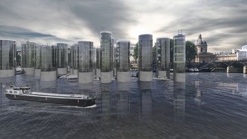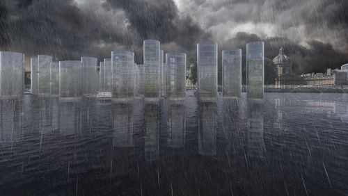 En l’an 2050, le réchauffement climatique global continue de s’aggraver. La situation est critique. Si la météo parisienne reste agréable pendant une partie de l’année, aussi connue sous le nom de « période sèche », des pluies diluviennes tombent sans trêve la moitié du temps. Par ailleurs, les crues, devenues beaucoup plus fréquentes, touchent la Seine et forcent les habitants à adapter leur mode de vie plusieurs mois durant, ce qui contribue au développement du télétravail. Pour répondre aux problématiques énergétiques, à la densification urbaine et pallier aux mauvaises conditions de vie terrestres, il faut désormais construire autre part. Et si l’avenir de Paris se concevait sur l’eau ?