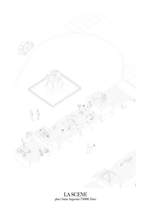 Une étude des places, à l’image d’une archéologie urbaine, a été réalisé afin de mettre en avant leur potentialité, en toute légalité. Cette démarche, precedent l’action de l’architectee, a laissé entrevoir trois possibilités d’insertion sur le site :