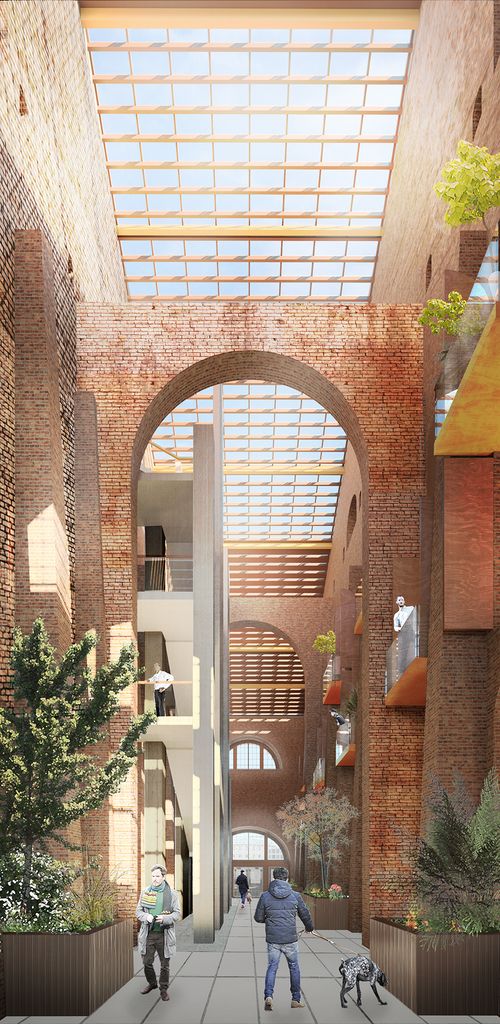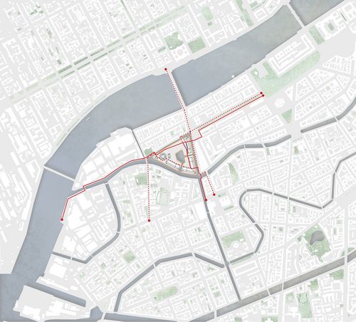 Pour ce projet de fin d'étude j'ai choisi de travailler sur l'île de la Nouvelle-Hollande à Saint-Pétersbourg. L'île a été une réserve de bois, interdit au public pendant trois siècles, puis abandonnée pendant une dizaine d'année. Ce projet reconverti l'île par un programme mixte avec des logements sur le thème de la co-habitation. En effet, réinventer notre mode vie avec plus de cohabitation est une solution d’avenir à la fois pratique, économique, écologique et sociale. À Saint-Pétersbourg un système d’appartements communautaires existe depuis les révolutions de 1917. Si ces vieux appartements sont vétustes et si le mode de vie en commun est subis, il sont l’occasion d’une entre-aide, d’une mixité sociale et d’une rentabilité de l’espace. Travailler ce thème dans ce site fait donc écho à une culture déjà ancrée et s'adapte également à la morphologie des anciens entrepôts. L'occasion est de travailler de grands appartements sur toute sa profondeur partagés par plusieurs foyers. Les combles permettent quant à eux des appartements privatifs. Ainsi l'entrepôt sera habité dans le projet par des logements qui se mélangent et se complètent. Les enjeux sont de rendre à la ville une enclave, en venant l'habiter quelque soit la saison à Saint-Pétersbourg, de faire une architecture en empathie avec ce site exceptionnel, et de rendre habitable des bâtiments destinés au stockage par un travail typologique.