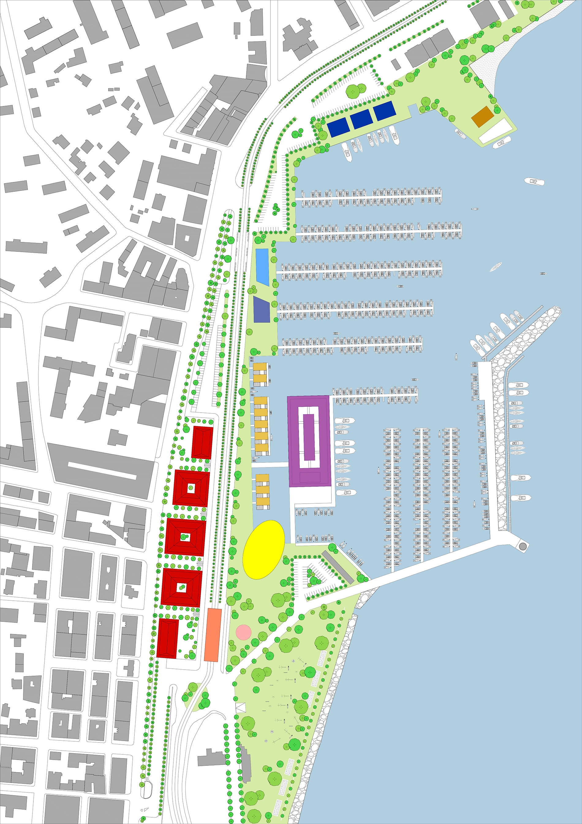 Actuellement la ville et le port sont deux éléments distincts, il s’agira donc d’unir la ville et le port par le biais de connections. De cette manière, la ville bénéficiera du dynamisme du port de plaisance, qui ne semble pas encore touché par le développement périphérique.