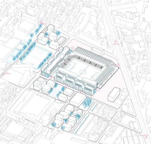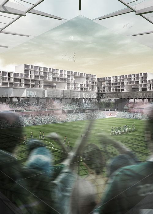 A travers ce projet c’est la volonté d’intégrer le stade à la ville qui est exprimée. Un stade qui réconcilierait supporter et riverains et qui ne serait plus seulement un antre mono-programmatique mais un élément fédérateur d’une nouvelle cohésion sociale.