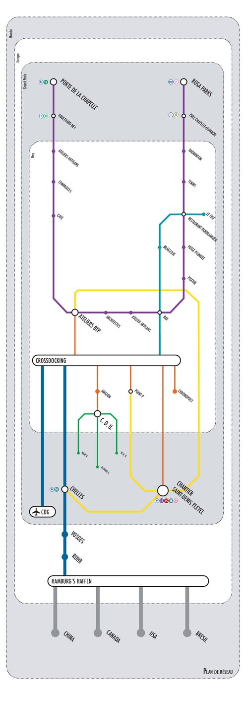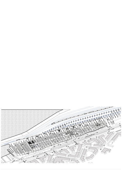 Par sa situation en plein cœur d’un territoire de flux, par sa programmation, par son aménagement, l’entrepôt fait interface entre le périphérique, l’infrastructure ferroviaire et la ville.
