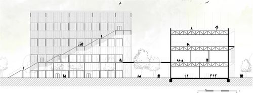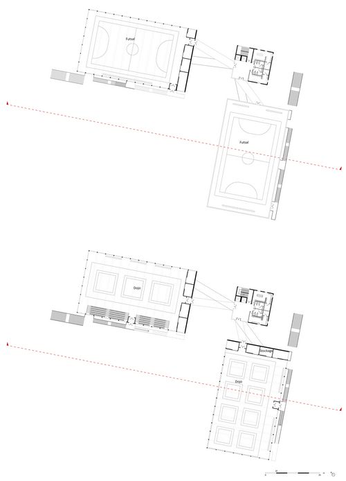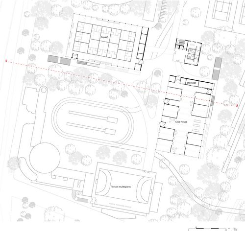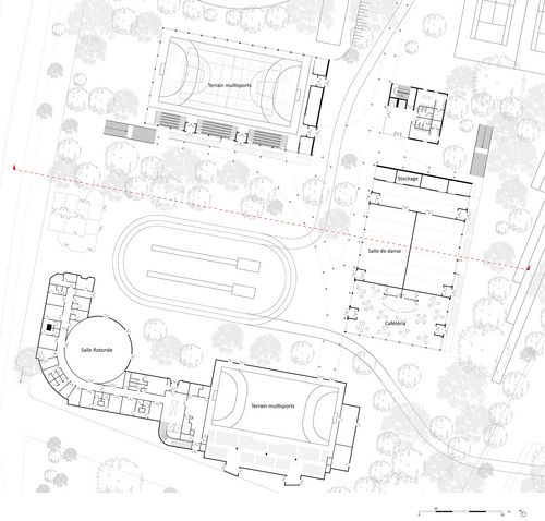 Le complexe sportif Léo Lagrange se situe dans le 12ème arrondissement et a été construit dans les années 1930 par les architectes Schneider et Coli sur les anciennes fortifications de l’enceinte de Thiers. Dans un contexte où Bercy-Charenton va devenir un nouveau quartier, il s’agit de compléter l’offre sportive dans un complexe de 5 ha arrivé à saturation. Le projet consiste à dédier entièrement le site au sport en adéquation avec l’histoire du lieu. De nouveaux bâtiments accueillent des terrains de sport. Ils renforcent l’angle bâti existant et définissent une nouvelle entrée sur le site. Les vestiaires et les sanitaires sont regroupés dans le bloc servant. Dans le bâtiment existant, les espaces délaissés comme la salle rotonde sont requalifiés. Anciens et nouveaux éléments sont connectés par une passerelle qui se dessine comme une colonne vertébrale. Le projet conserve une porosité entre le front bâti du boulevard Poniatowski et le bois de Vincennes pour laisser le plateau sportif ouvert sur la ville. Les terrains de sports extérieurs sont réorganisés et tournés vers le bois. Le végétal est traité par des lanières boisées qui permettent au bois d’entrer dans le site.