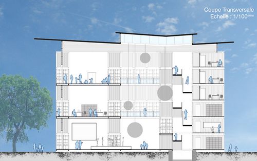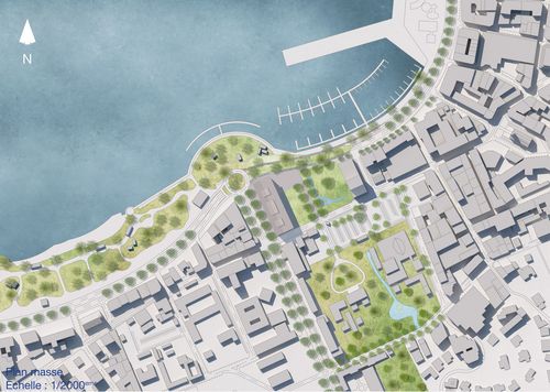 Située au coeur du Pacifique, à cinq heures de vol du pays le plus proche, Papeete, capitale de la Polynésie française, jouit d’une situation inédite. Ce cadre induit des contraintes particulières auxquelles nous nous sommes confrontés dans la réalisation de ce projet. La forte dépendance envers le monde extérieur, accentuée par l’accélération du développement économique au cours des années 60, nous a incité à proposer un projet constitué des conteneurs maritimes qui approvisionnent régulièrement Tahiti aujourd’hui. Afin d’ouvrir le territoire sur le reste du monde et compenser son isolement géographique et culturel, l’objet de ce travail a consisté à proposer un centre d’art contemporain au coeur de Papeete. Le projet urbain qui l’accompagne s’articule autour de deux axes de réflexion majeurs : atténuer la rupture que représente le boulevard Pomare entre le centre ville et l’espace public du front de mer ainsi que favoriser une continuité verte. Finalement, le projet présente une ambition écologique forte avec l’utilisation d’un matériau de réemploi et biosourcé ainsi qu’une volonté de ventilation naturelle.