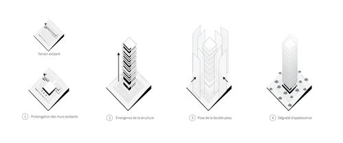 Notre projet, qui se positionne comme une question plus qu’une réponse, propose un développement vertical des cimetières historiques existants.