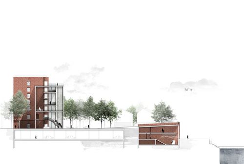 Un programme urbain à d’abord été établi en prenant en compte un projet qui verra le jour sur ce même site en 2020. L’idée est ici de faire un contre projet, tout en prenant un programme identique, établi par la ville afin de répondre à une demande concrète. Ce dernier comprend une grande quantité de logements, une résidence séniors, des bureaux, des cabinets médicaux, commerces et services, et enfin une auberge.
