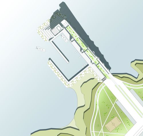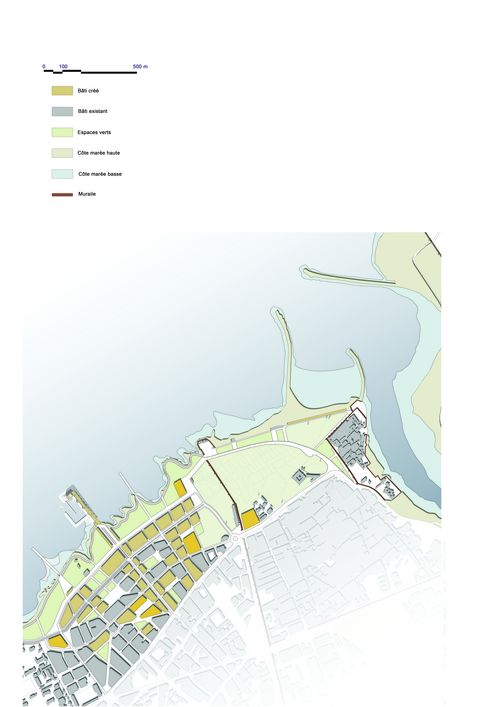 A l’échelle de la ville, le projet se concentre sur le détournement du trafic routier de la côte vers d’autres voies. A l’échelle du quartier, un remaniement des voiries permet de rendre le sol aux piétons et une restructuration du bâti et de la trame d’équipement permettront de renforcer l’attractivité du quartier et ses liens avec l’ensemble de l’agglomération. L’édifice, une station de recherche en biologie marine doublée d’un équipement public sur le thème de l’océan, le tout intégré dans l’épaisseur d’une digue, représente le nouvel élan de la ville vers la mer.