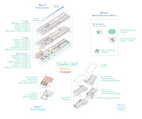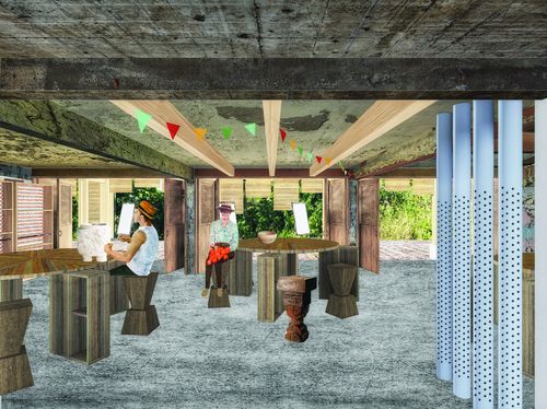 Plutôt que d'étendre l'implantation du bâti, le projet prévoit de conserver l'existant, de révéler et multiplier les traces du passage du temps sur ces bâtiments symboliques d’une architecture moderne en Guyane.