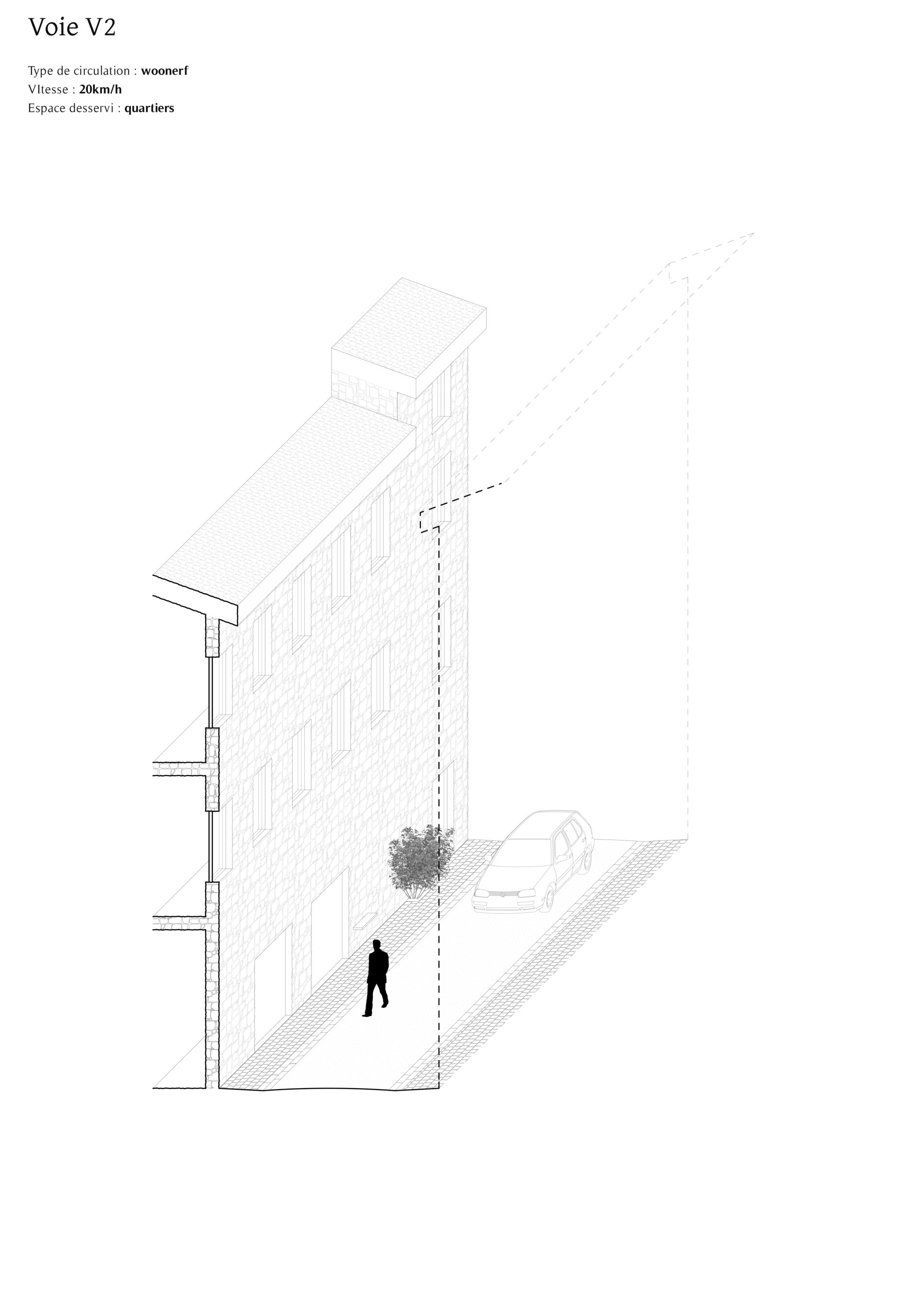 Pour mon projet de fin d’études, je me suis intéressée au programme de l’ANAH « Revitalisons les centres-bourgs ». Il me semblait très intéressant, d’une part, de traiter un sujet encadré par un organisme et en relation avec des acteurs réels, et d’autre part car je suis sensible à l’idée de rénover du patrimoine bâti existant plutôt que de toujours rechercher à construire plus. En suivant mon instinct, j’ai donc choisi d’implanter mon projet à Largentière, petit bourg d’Ardèche méridionale de 1800 habitants. Depuis un certain temps déjà je m’intéressais à la manière dont les gens cohabitaient dans l’espace urbain. Dans le cadre de mon mémoire, j’ai de fait abordé le sujet des espaces intermédiaires, situés entre rue et logement, et la complexité de leur conception. Après avoir longuement étudié Largentière, j’ai finalement décidé d’offrir une réponse à la dévitalisation du bourg par le biais du traitement de l’espace public. Mon projet a donc consisté à remodeler, repenser, remanier l’espace public urbain du village afin de le hiérarchiser et de le rendre plus appropriable par les habitants et les touristes.