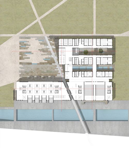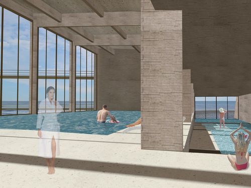 Après un séjour le long des Côtes d’Armor, et une analyse quasi-exhaustive sur le sujet, nous avons décidé de nous implanter sur le littoral de la Baie de St-Brieuc, sur le site de la Grève des Courses. Il s’agit d’un terrain gagné sur la mer, puisqu’il était jusqu’à 1980, une décharge illégale. Ce polder est situé sur la limite communale de Saint-Brieuc et de Langueux, définie par la rivière du Douvenant, et fait intervenir la notion d’intercommunalité. Les marées vertes sont un phénomène causé par l’usage intensif des pesticides des agriculteurs et éleveurs bretons. De facto, le tourisme breton a été fragilisé et le terroir local est dévalorisé. « La Cité Gastronomique – Le Palais des Algues », conçue par Juliette BRIGNONE, regroupera une Ecole de Haute Gastronomie (Pôle Educatif) telle l’Ecole Ferrandi, un Centre Culturel et de Conférences dans un esprit « Jardin d’acclimatation » comme la Gare Atocha à Madrid, ainsi qu’une Halle de Marché faisant référence à l’esprit Food Market comme les Halles San Lorenzo à Florence ou le Marché des Enfants Rouges – Paris 3ème, visant à revaloriser le terroir breton, à rendre attractif ce littoral délaissé, et redynamiser le Pays de Saint-Brieuc avec un programme éducatif, et éco-touristique. Ce programme de 9 000 m2 est en relation direct avec un Centre Thermal Algal « Immersion » conçu par Nawel BENFERHAT. Nos deux projets seront liés et parcourus par un aménagement paysager terrestre et maritime, ainsi qu’une restructuration des voieries alentours. Le complexe s’insère au cœur d’un écrin vert et d’un aménagement paysager intégrant diverses promenades le long du littoral et autour du site.