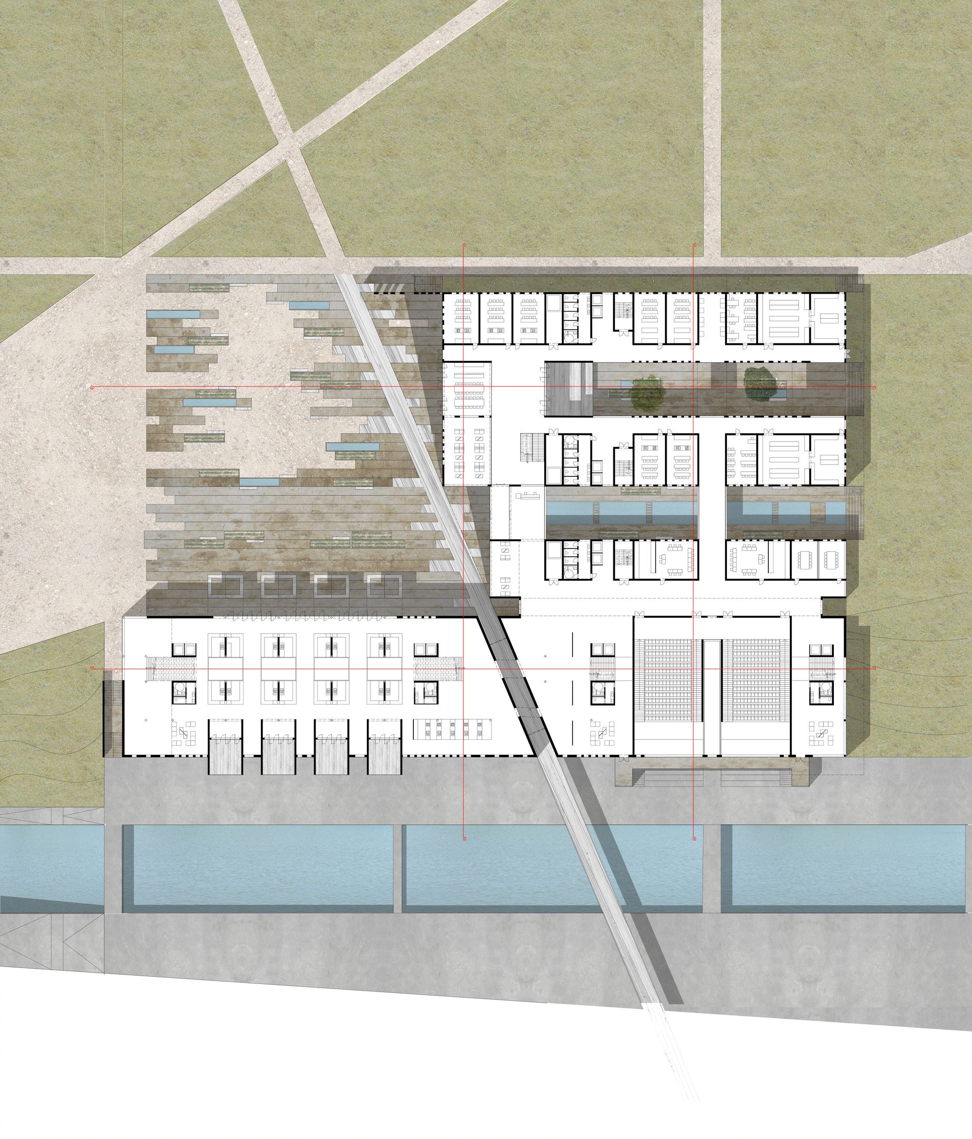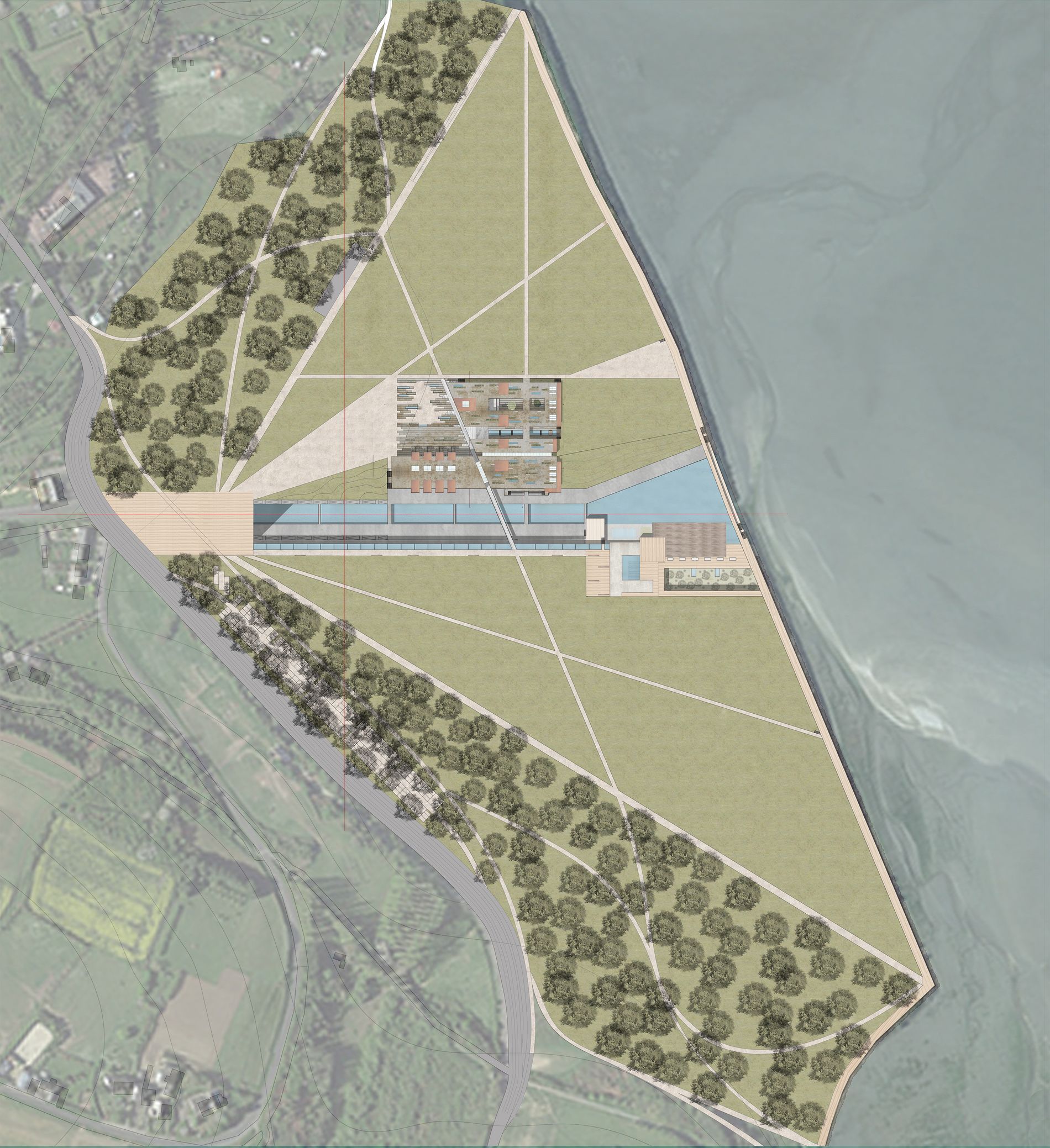 Après un séjour le long des Côtes d’Armor, et une analyse quasi-exhaustive sur le sujet, nous avons décidé de nous implanter sur le littoral de la Baie de St-Brieuc, sur le site de la Grève des Courses. Il s’agit d’un terrain gagné sur la mer, puisqu’il était jusqu’à 1980, une décharge illégale. Ce polder est situé sur la limite communale de Saint-Brieuc et de Langueux, définie par la rivière du Douvenant, et fait intervenir la notion d’intercommunalité. Les marées vertes sont un phénomène causé par l’usage intensif des pesticides des agriculteurs et éleveurs bretons. De facto, le tourisme breton a été fragilisé et le terroir local est dévalorisé. « La Cité Gastronomique – Le Palais des Algues », conçue par Juliette BRIGNONE, regroupera une Ecole de Haute Gastronomie (Pôle Educatif) telle l’Ecole Ferrandi, un Centre Culturel et de Conférences dans un esprit « Jardin d’acclimatation » comme la Gare Atocha à Madrid, ainsi qu’une Halle de Marché faisant référence à l’esprit Food Market comme les Halles San Lorenzo à Florence ou le Marché des Enfants Rouges – Paris 3ème, visant à revaloriser le terroir breton, à rendre attractif ce littoral délaissé, et redynamiser le Pays de Saint-Brieuc avec un programme éducatif, et éco-touristique. Ce programme de 9 000 m2 est en relation direct avec un Centre Thermal Algal « Immersion » conçu par Nawel BENFERHAT. Nos deux projets seront liés et parcourus par un aménagement paysager terrestre et maritime, ainsi qu’une restructuration des voieries alentours. Le complexe s’insère au cœur d’un écrin vert et d’un aménagement paysager intégrant diverses promenades le long du littoral et autour du site.