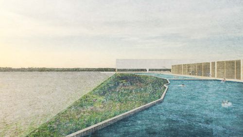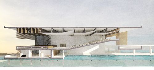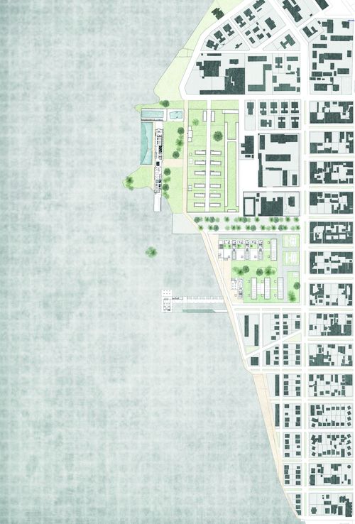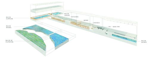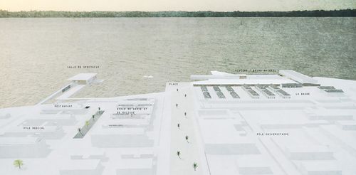 A travers ce PFE en binôme nous voulons trouver une façon de reconnecter, via des systèmes urbains, et des équipements, les liens entre la ville et son fleuve. Ces équipements permettant aussi de créer une mixité sociale entre les ethnies. L’objectif est de proposer des équipements qui dynamisent le coeur du centre ville et qui créés du lien social le jour et qui « déghettorise » la nuit. Un premier projet, (développé par Romain Derouet ), implanté sur le haut du centre ville, « la roche bleue » prendra la forme de « bains naturels » avec des bassins pour l’apprentissage, pour le sport et pour la détente, ainsi qu’un espace wellness, et fitness, afin de créer un équipement valorisant, moderne et agréable, adapté a toutes les pratiques, et offrir un fonctionnement polyvalent selon les publics et les activités. Un deuxième projet ( développé par Maeva Soto-Pietri ), implanté dans le prolongement de la voie longeant l’hôpital. Le projet prendra la forme d’un « ponton » habité sur le fleuve. Dans la continuité de vouloir créer des liens et dynamiser le centre ville ce ponton comprendra : une salle de spectacle pour la ville et une école de danse pour l’apprentissage permettant de réunir et de créer des mixité sociales. Le projet se développe comme une continuité de la ville sur le fleuve.