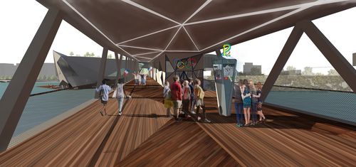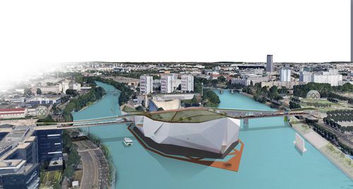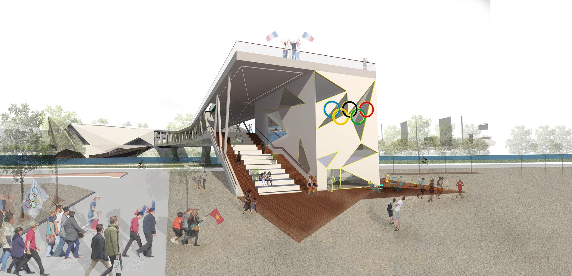 Notre projet de fin d’études est un complément à la candidature des JO de Paris 2024. Nous créons un parcours le long de la Seine pour les supporters. Les points d’arrêts comportent diverses activités : il est possible de suivre les jeux, pratiquer ou découvrir un sport, se restaurer et découvrir l’île de France. Suite à de nombreuses analyses, nous avons choisi 6 sites particuliers pour les supporters. Nous développons le point d’arrêt de l’île Saint-Denis, point stratégique du parcours, en proposant des passerelles habitées ainsi qu’un centre d’escalade. Il faut rappeler que l’escalade rentre au JO 2020. Sur l’ile, nous redonnons vie au complexe sportif dont les bâtiments sont classés au MH. Les édifices amènent le visiteur en proue d’ile grâce à une progression en plan et en volumétrie. La forme du bâtiment et du parement est une représentation géométrique de l’escalade moderne. Dans nos deux projets, le sport et l’architecture sont en lien.