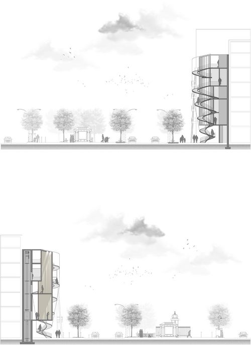 Parfois brutal, isolé, souvent clôturé, le cimetière est un lieu qui a, à mon sens, beaucoup à dire et ne correspond dorénavant plus aux structures funéraires actuelles. J’ai ainsi choisi de le ré-inventer, d’en faire un espace inattendu où le défunt revient au coeur de la ville, un espace qui parle de la mort de l’Homme et du silence de cette absence. Il est ici question de construire pour ce qui ne vit plus, de structurer l’infi ni, le contraindre à dialoguer. Le dessein architectural de ce projet est d’allier intelligibilité et dépouillement, cherchant par là, une certaine pérennité par le renoncement à tout eff et plastique. Tel un monolithe évanescent, lévitant sur sa base et effl eurant le sol au travers d’un repli, cet objet architectural cherche à marquer une rupture manifeste avec l’eff ervescence de la rue. Son esthétique et son implantation devront faire de ce passage, un élément à la fois présent et absent, ou bien présent par sa volonté d’absence. Car si face au néant l’on s’anéantit, mon projet aurait alors pour vocation, au travers d’une transparence évanescente, la revendication d’un refus de l’expressivité. En laissant ainsi le vide structurer l’espace, il sera question de saisir le drame dans sa matérialité, d’expérimenter la perte et pour ainsi dire l’aliénation. Comme tout prototype, il s’agit d’explorer, de questionner, de repenser sans cesse et parfois, de s’abandonner.