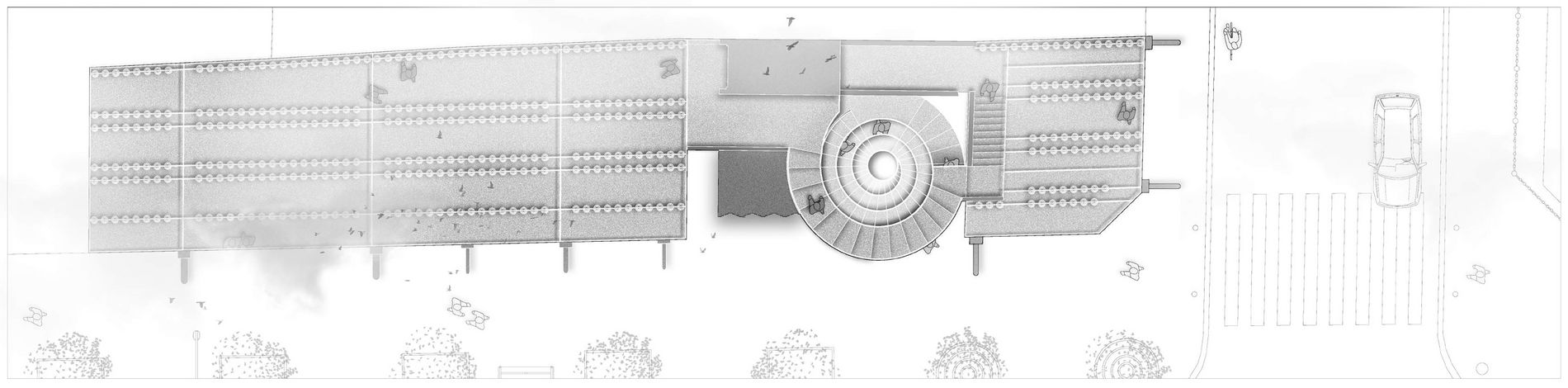 Parfois brutal, isolé, souvent clôturé, le cimetière est un lieu qui a, à mon sens, beaucoup à dire et ne correspond dorénavant plus aux structures funéraires actuelles. J’ai ainsi choisi de le ré-inventer, d’en faire un espace inattendu où le défunt revient au coeur de la ville, un espace qui parle de la mort de l’Homme et du silence de cette absence. Il est ici question de construire pour ce qui ne vit plus, de structurer l’infi ni, le contraindre à dialoguer. Le dessein architectural de ce projet est d’allier intelligibilité et dépouillement, cherchant par là, une certaine pérennité par le renoncement à tout eff et plastique. Tel un monolithe évanescent, lévitant sur sa base et effl eurant le sol au travers d’un repli, cet objet architectural cherche à marquer une rupture manifeste avec l’eff ervescence de la rue. Son esthétique et son implantation devront faire de ce passage, un élément à la fois présent et absent, ou bien présent par sa volonté d’absence. Car si face au néant l’on s’anéantit, mon projet aurait alors pour vocation, au travers d’une transparence évanescente, la revendication d’un refus de l’expressivité. En laissant ainsi le vide structurer l’espace, il sera question de saisir le drame dans sa matérialité, d’expérimenter la perte et pour ainsi dire l’aliénation. Comme tout prototype, il s’agit d’explorer, de questionner, de repenser sans cesse et parfois, de s’abandonner.