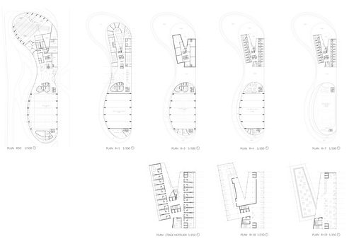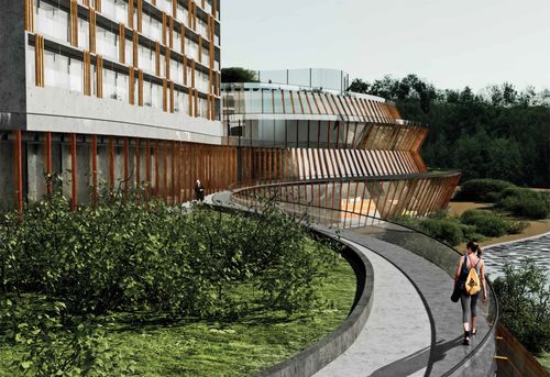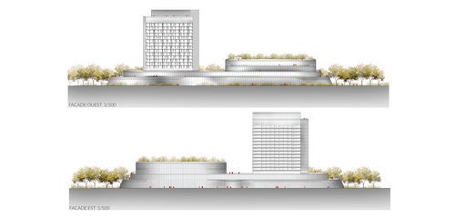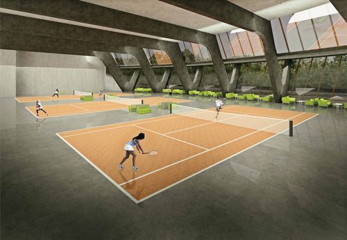 Je souhaiterais que mon projet devienne un endroit où les sportifs trouvent tout ce qui est nécessaire pour une bonne préparation à leurs compétitions. Des espaces confortables et calmes pour dormir, de généreuses surfaces d’équipements pour les entrainements mais également plusieurs fonctions dédiées à la détente entourées d’espaces verts. J’aimerais que l’ambiance magique de la foret entre dans mon bâtiment. C’est pourquoi sur le côté ouest je propose des formes libres en référence à la nature. La végétation va dominer dans une cour intérieure et sur les toits- terrasses. De l’autre côté je souhaite que mon édifice appartienne à la ville et à son architecture. J’aimerais que l’activité physique qui prend place dans mon bâtiment soit visible depuis la rue, pour partager avec elle la joie, l’énergie et les valeurs du sport. Je voudrais également que les clients du complexe puissent profiter de l’ambiance parisienne du quartier. Par conséquent, sur les derniers niveaux de l’immeuble je propose des espaces avec une vue panoramique vers la capitale et ses monuments symboliques.