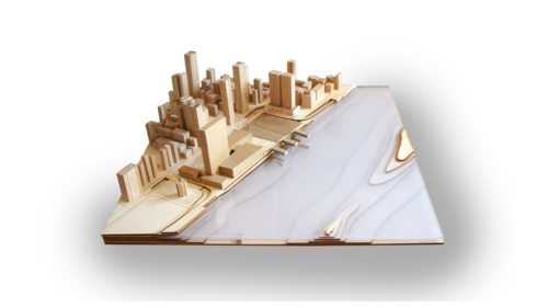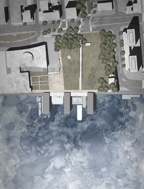 New-York City, la plus grande ville des États-Unis, est avant tout une "ville-monde". Cependant, même la "Big Apple" n'échappe pas au réchauffement climatique. La constante montée des eaux et les ouragans de plus en plus violents constituent des vrais dangers auxquels la ville doit faire face. L'ouragan Sandy en 2012 a ravagé NYC, laissant derrière lui un bilan humain et matériel très dur pour la ville. Face à la montée des eaux, la menace constante des ouragans et des inondations que peut faire la ville pour être plus résiliente ? La plateforme des Nations Unies est le seul endroit sur le côte Est de Manhattan qui se trouve en bord de mer sans être inondé lors d'ouragans ou d'inondations violentes. Le projet est composé de trois modules, dont une caserne de pompiers maritimes, une place couverte qui pourrait devenir un centre d'abris en cas d'urgence, puis un bâtiment pour les gardes-côtes. Au niveau de l'eau, trois quais viennent compléter le programme de trois modules dont un "quai d'urgence" qui sert comme plateforme de chargement et de déchargement des bâteaux, même lors de fortes inondations. Le tout s'intègre au tissu urbain et au paysage, tout en restant fonctionnel et accessible en cas d'urgence.
