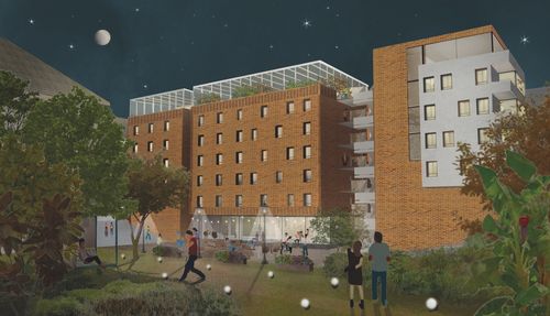 J'ai travaillé un an dans cette association sur le projet des Grands Voisins, nom donné à l'occupation temporaire de l'ancien hopital de Saint-Vincent-de-Paul. Après cette expérience, de nombreux questionnements ont émergé et j'ai donc décidé de poursuivre mes réflexions à l'occasion de mon master 2. J'ai commencé à réfléchir au futur projet urbain qui remplacera les grands voisins. En effet, la mairie de Paris projette d'y construire un écoquartier et les exigences de densité auxquels le projet doit répondre contraint à reconstruire une grande partie des bâtiments, tirant ainsi un trait sur plus de deux siècles d'histoire hospitalière. Mais pas seulement ! Les Grands voisins Voisins ont créé en deux ans un microcosme s'appuyant sur le patrimoine existant pour raconter leurs propres histoires. Les usages qui y sont testés révèlent des possibilités à prendre en compte pour l'aménagement du futur écoquartier. La présence de six centres d'hébergement d'urgence notamment montre qu'il est possible d'intégrer des personnes démunies dans la vie d'un quartier. C'est sur cette thématique que j'ai choisi de développer le programme d'un des bâtiments de mon projet urbain en imaginant un bâtiment mixte incluant un centre de résinsertion sociale (CHRS).