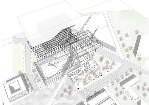 Pour répondre a cette problématique j'ai travaillé sur un programme de liaison pour faire de ce paysage urbain très morcelé et isolé, un lieu de rassemblement afin de regrouper les scientifiques du plateau.