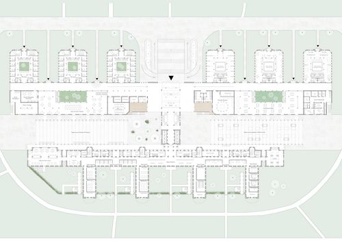 Ce Projet de Fin d’Etude traite de l’intervention dans un existant, l’hôpital Beaujon à Clichy, destiné à être reconverti à horizon 2025, dû au transfert de ses services dans un futur grand hôpital Nord à Saint-Ouen. Plusieurs éléments m’ont poussée à choisir ce site : sa monumentalité et son rayonnement qui en font un landmark au sein du quartier, le caractère patrimonial du bâtiment, les potentialités paysagères au sein du site mais aussi à l’extérieur - notamment la proximité d’un jardin historique au sud, le parc Roger Salengro, et de la Seine au nord - ainsi que la vue offerte vers Paris grâce à sa verticalité, particulièrement la vue panoramique depuis la toiture. D’un point de vue programmatique, les potentialités offertes par ce site - sa situation, son ouverture possible au quartier, sa pluralité de constructions et son importante capacité d’accueil m’ont orientée vers la thématique de l’hébergement. L’hôpital étant un lieu d’hébergement temporaire accueillant à l’origine les populations les plus démunies, je me suis intéressée à d’autres types de structures temporaires hébergeant des personnes en situation de précarité. La grande médiatisation de la « crise des
