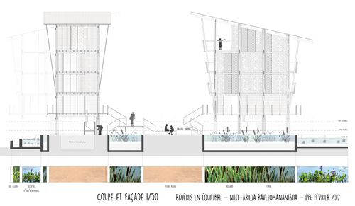 La rizière a toujours fait partie de la cie des Tananariviens. C'est un symbole fort dans la culture et la société malgache, dans l'éthnie Merina aussi. La rizière est une ressource pour les malgaches depuis le commencement. Aujourd'hui, elle disparaît sous les remblais et sous les rejets industriels. Les rizières souffrent de plusieurs maux, causés par une expansion urbaine anarchique et incontrôlée, initiée par plusieurs acteurs qui ne s'entendent ni entre eux, ni avec l'environnement. Le projet Rizières en équilibre est un projet de ville sur d'anciennes rizières, maintenant réduites à l'état de marécages. L'idée dest de retrouver l'équilibre entre la ville et la rizière.