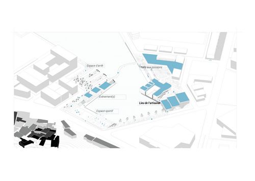 A la suite de ce concours, un projet de l’agence Reichen et Robert a été retenu et est en cours d’étude pour sa réalisation. Néanmoins le projet gagnant souffre de nombreuses critiques et interpelle les architectes et urbanistes Tangérois. Malgré une volonté de rendre le port aux habitants, l’approche urbaine et architecturale questionne quant à la relation que crée le projet avec la ville existante. C'est pourquoi il m'a parut intéressant de proposer un contre projet à la fois urbain et architectural. Dans un premier temps il a été question de réhabiliter le port de pêche et d'insérer un nouveau tissu urbain afin de densifier l'espace portuaire. Par la suite j'ai traité une zone déterminée situé à la jonction entre le port et la médina, en traitant l'espace publique des quais et en créant une nouvelle liaison avec une passerelle vers une place publique liée à l'artisanat. Enfin il a été intéressant de traiter au sein de cette place, un projet d'architecture réunissant un centre de formation pour l'artisanat et un équipement public où les artisans pourront exposer et vendre leur production.