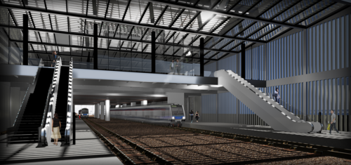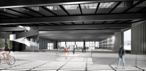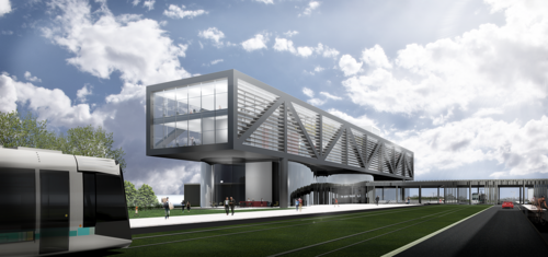Il s’agit de créer une nouvelle entrée sur le site grâce à la nouvelle sta5on de RER D entre les stations existantes de Gare de Lyon et Maisons Alfort - Alfortville. Cette gare est couplée avec un équipement. Cet ensemble est pensé pour offrir à chacun un lieu d’échange en termes de mobilité, mais aussi en termes de savoir et de connaissances. Cet équipement interroge ce qu’est une bibliothèque dans la ville contemporaine. Ainsi on y retrouve un espace dédié au prêt et à la consultation de livre, un espace enfant, mais aussi des salles informatiques, des salles de projection, un auditorium, un fab lab, etc. ...