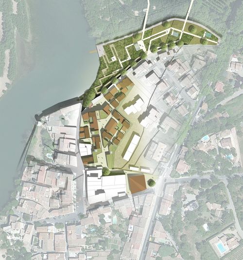 Mon projet propose donc l'intégration de logements et d'un chai, espace de production viticole, au centre du village, afin d'offrir une alternative aux lotissements. Sa typologie reprend les codes locaux (dimensionnement des espaces publics, choix de la pierre structurelle) afin de ne pas créer de discontinuité urbaine et de conserver le paysage environnant.