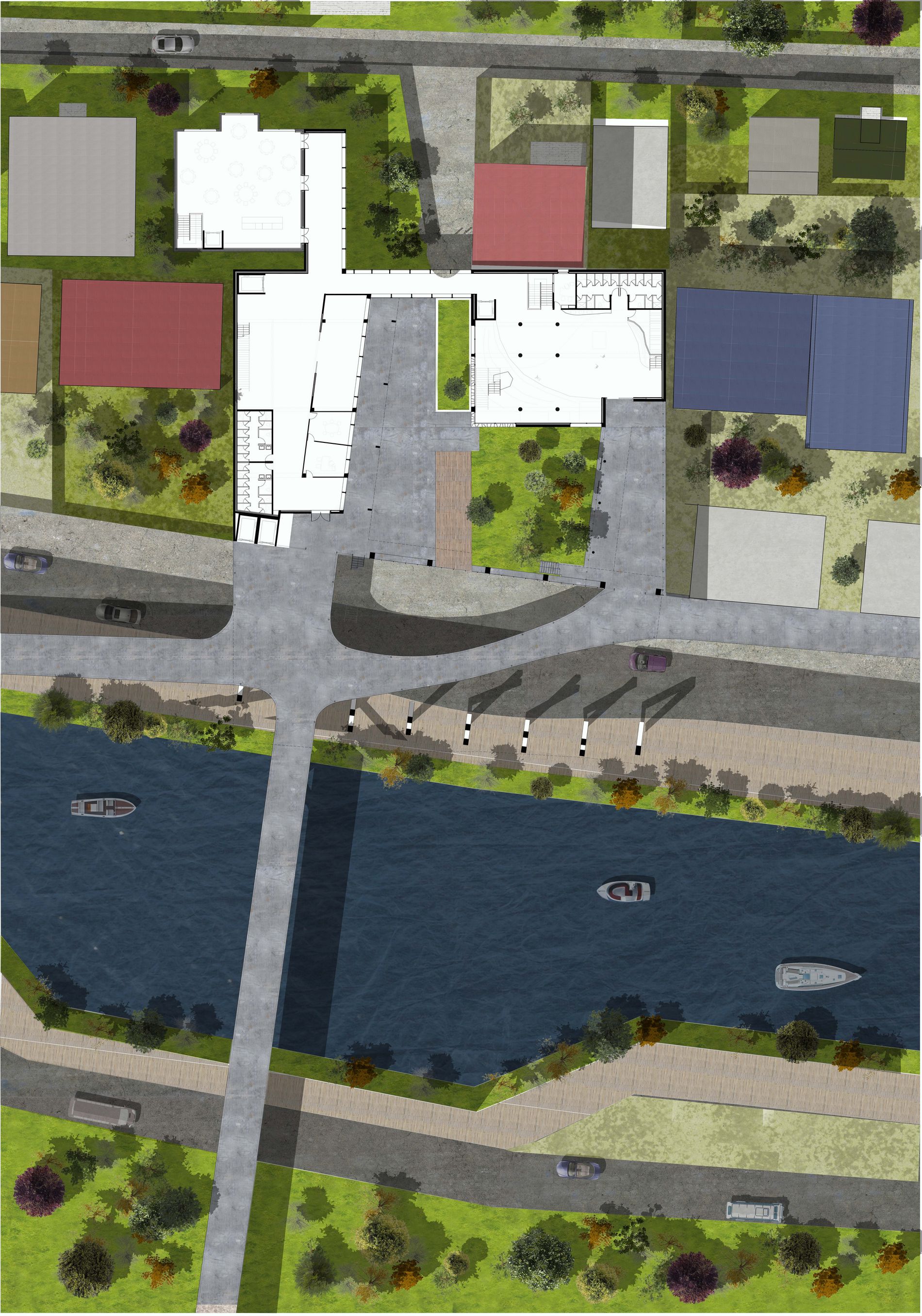 Le site présente des échelles contrastées: des tours, des activités et une omniprésence de la voiture rendent le quartier pavillonnaire enclavé. Le lac peut-être un lien de transition pour la vie de quartier et la dynamique d’un Bucarest Métropole. La proposition urbaine développe une infrastructure d’espace publique en hauteur afin que le piéton découvre les échelles du site sans s’y sentir menacé. Un programme mixe de logements et d’équipements publics desservis par la rue-passerelle donne une nouvelle vie le long du canal. Pour le projet d'architecture une école vient s'implanter au tenant d'une petite école existante en étant son extension. Un gymnase de quartier juxtapose l'école et apporte une échelle de transition entre l'échelle des tours au sud du canal et l'échelle du quartier de maison individuelle. Ce complexe scolaire s'implante au nœud de la passerelle du projet urbain qui en est le parvis et un passage publique, récurant à Bucarest depuis le XIXème siècle, traverse sous le bâtiment permet aussi une connexion des différents visages de la ville tout en créant la surprise.