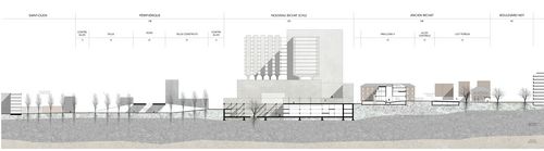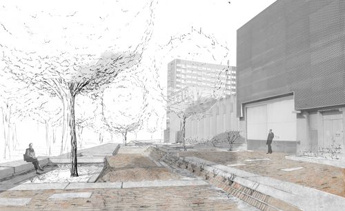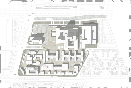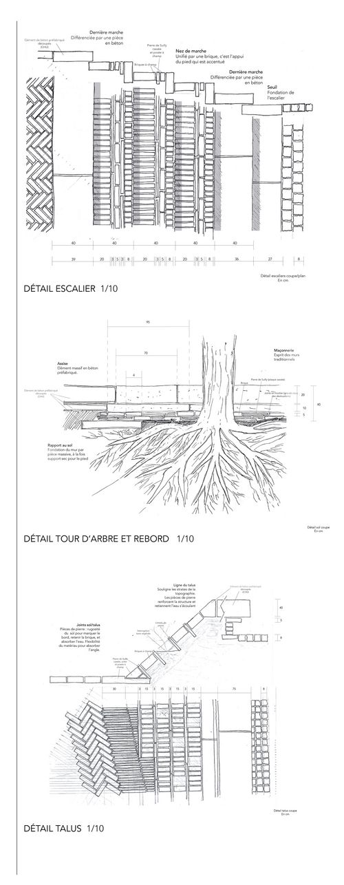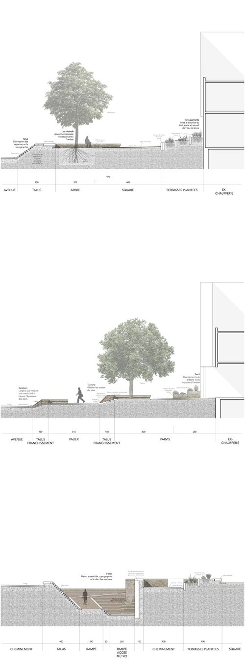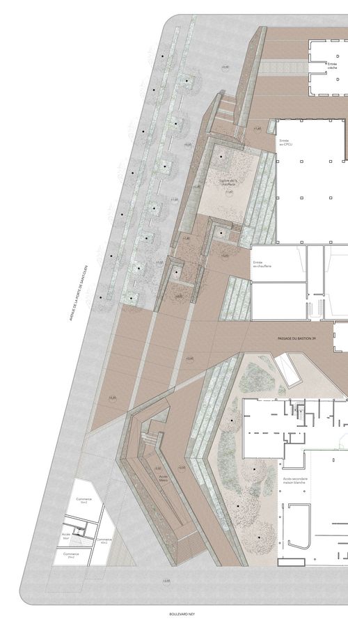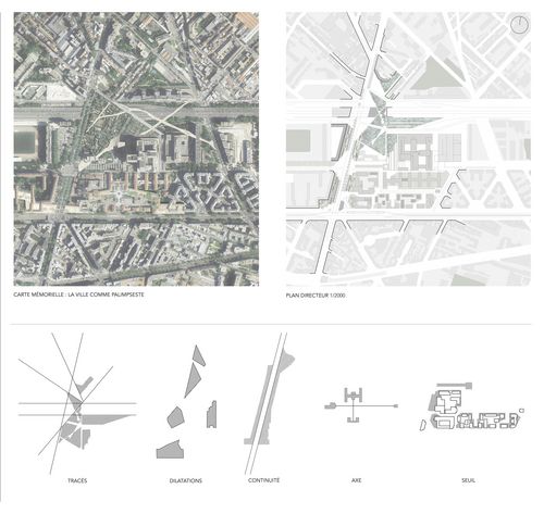 L’hôpital Bichat, situé sur la ceinture de Paris, déménage dans 10 ans. Comment ouvrir ce site de 6,5 ha à la ville, et en faire un lien entre Paris et sa banlieue ? L’unité fonctionnelle de l’hôpital masque l’extrême diversité de son bâti, par sa qualité patrimoniale, son époque, son rapport au vide, au sol. Le projet s’intéresse donc aux espaces qui relient, espaces ouverts donc, un projet de sol. La démarche architecturale s’appuie sur la mémoire collective du lieu, symbolique (ses récits, son imaginaire), spatiale (la sédimentation du site) et matérielle (ses ressources qui constituent un paysage familier), afin de replacer au coeur du projet l’expérience de ceux qui le pratiquent, habitants, usagers, qui par leur présence font exister la permanence de la ville. S’inspirant de la fabrique de la ville pré-industrielle, le projet récupère les matériaux issus des transformations du site pour composer le sol de l’espace public, s’appuyant sur les traces, dénivelés, et perception du patrimoine. Il en résulte une topographie du site qui révèle le palimpseste de ce lieu, à travers une série de séquences urbaines.