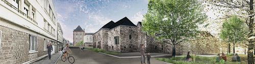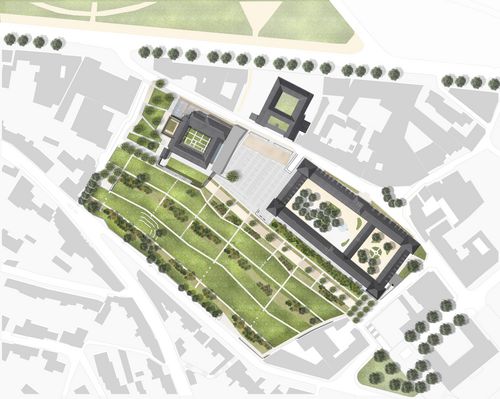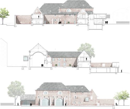 Situé à Rodez, en plein cœur de ville, l'enclos Combarel constitue une friche de 3 ha occupée par l'ancien hôpital et l'ancienne maison d'arrêt, qui était à l'origine le couvent des Capucins fondé au début du 17e siècle, qui est devenue prison à partir de la Révolution française et ce, jusqu'en 2013. L'enjeu du projet est double. D'une part, il s'agit d'ouvrir le site sur la ville, de réintégrer dans le tissu urbain cet espace resté clos pendant des siècles. D'autre part, il s'agit de valoriser l'identité et le patrimoine ruthénois tout en l'adaptant à son nouvel usage. Situé à proximité du Foirail, quartier récemment aménagé par le Musée Soulages, une salle des fête et un complexe de cinéma, l'enclos Combarel constitue un fort potentiel à exploiter. Il marque l'alternative au Foirail et joue un rôle complémentaire. De caractéristiques morphologiques et topographiques similaires, ces deux espaces ouverts sont l'opportunité d'offrir aux habitants des vues longues sur la campagne environnante au Nord ou au Sud de la ville. La reconversion des bâtiments désaffectés en auberge de jeunesse et centre culturel permettrait de redynamiser le quartier Combarel et de répondre à une demande d'hébergement touristique importante depuis l'impulsion apportée par la construction du Musée Soulages, d'autant plus que les hébergements concernant cette catégorie de voyageurs est encore inexistante dans la ville. L'enclos est aménagé en espace paysager qui reprend les tracés des jardins qui existaient avant l'extension de l'hôpital jusqu'au bas du site dans les années 1970. Cerné par un mur d'enceinte, il s'agit d'un espace calme en dehors du tumulte du centre ville, un espace entre la ville et la campagne. La place des Capucins nouvellement créée, coordonne les trois bâtiments de la prison, de l'évêché et de l'hôpital. Située au Nord de l'enclos au niveau le plus haut, elle est le point d'entrée principal du site et s'ouvre en belvédère sur le parc et par extension sur la campagne. L'intervention dans l'ancienne prison consiste à conserver le maximum d'éléments anciens afin de retrouver l'identité du bâtiment qui témoigne de son histoire, celle d'un couvent, puis celle d'une prison. Le gros œuvre est conservé, le mur d'enceinte, la charpente, ainsi que certains barreaux caractéristiques du 17eme siècle. Les espaces extérieurs s'inspirent des jardins monastiques. L'extension vient établir la connexion entre le bâtiment et l'espace public en débordant légèrement sur la place. Elle marque l'entrée principale du nouvel équipement et se distingue de l'existant par un langage architectural contemporain. Les points de contact entre les deux sont minimisés pour conserver la lecture des bâtiments anciens. Le plan intérieur est hiérarchisé en trois niveaux: le R+1 où se trouvent les chambres correspond à l'étage intime, le RDC où se trouve les espaces communs, l'alter café et un auditorium et centre de ressources, mélange les résidents et le public, le R-1 où se trouve une galerie et des ateliers d'artiste est totalement dédié au public.