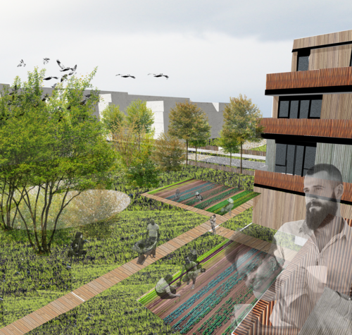 sur le territoire ? Pour répondre à cela, j'ai établi un projet à l’échelle du Grand Paysage sur ce thème, puis me suis intéressée aux problématiques d’échelle urbaine sur le territoire, et ai pris le parti de lier deux quartiers monofonctionnels par un quartier durable inscrit dans la