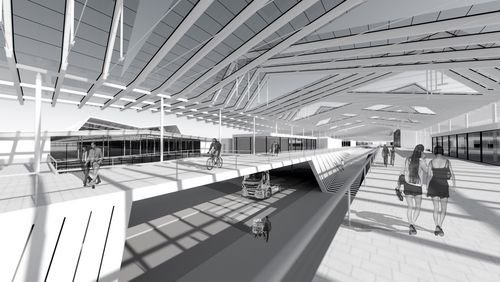 La « rue suspendue » reconnecte les quartiers d’habitations et agit comme une colonne vertébrale organisant les accès piétons aux halles, aux deux zones hôtelières et au Palais des congrès. La « tabla rasa » n’est plus une solution envisageable du point de vue social, écologique et patrimonial comme le démontre la catastrophe architecturale de la destruction des Halles centrales de Paris. La « rue suspendue » est un support anticipant la mutation du marché et permettant la sauvegarde de ce patrimoine lorsque les halles ne permettront plus d’accueillir leurs fonctions initiales. L’introduction d’activités publics par la mutation réversible des halles aux fruits et légumes montre que la mixité programmatique et la cohabitation dans une emprise d’activité industrielle est possible et préférable.