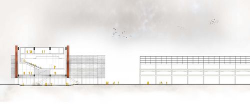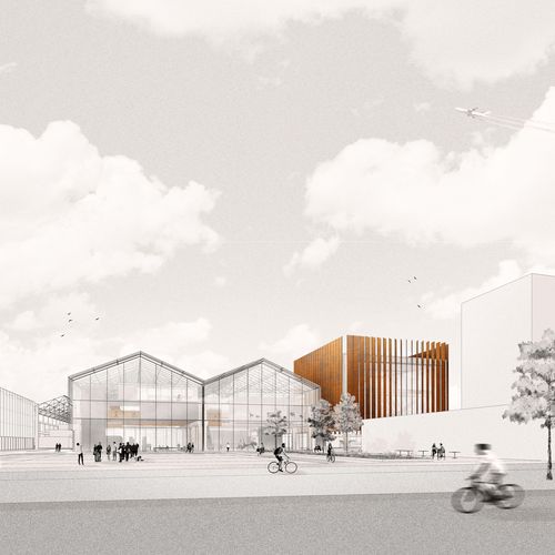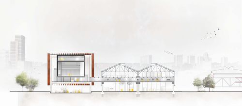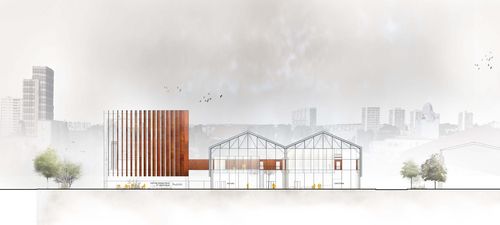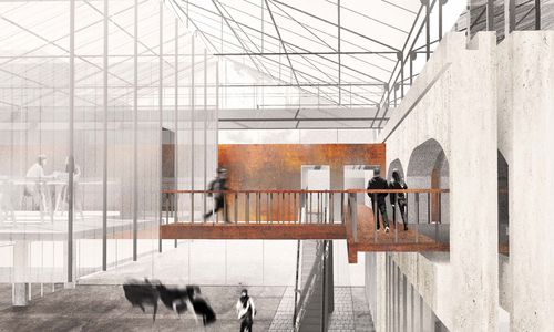 L’objet de ce projet fait suite à une expérimentation à l’échelle urbaine d’une enclave dans un centre-ville, celui de la Courneuve. Elle se trouve sur la parcelle aujourd’hui occupée par les entrepôts Kdi. Caractérisée par sa présence dans l’histoire de l’industrie de la Courneuve, cette suite de l’expérimentation, maintenant à l’échelle architecturale, possède les mêmes fondements que le projet urbain, à savoir une inscription dans l’histoire particulière de ces entrepôts, constituée de strates accumulées au fil du temps, ainsi que la prise en compte d’une opportunité urbaine, avec la présence du boulevard Pasteur qui longe la parcelle, lien entre la gare RER et la future gare GPE. Ce nouvel équipement, constituant en un centre dramatique, propose de s’appuyer sur les qualités structurelles de l’existant en procédant à une greffe architecturale. Le greffon devient alors colonne vertébrale du projet, depuis lequel l’extension (la salle de spectacle) émerge, permettant de traiter l’interface entre boulevard et îlot. L’ensemble de ce qui est créé étant suspendu, cela permet de traiter un rez-de-chaussée urbain, faisant ainsi le pont entre les deux échelles.