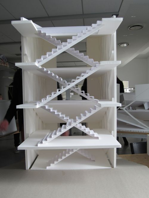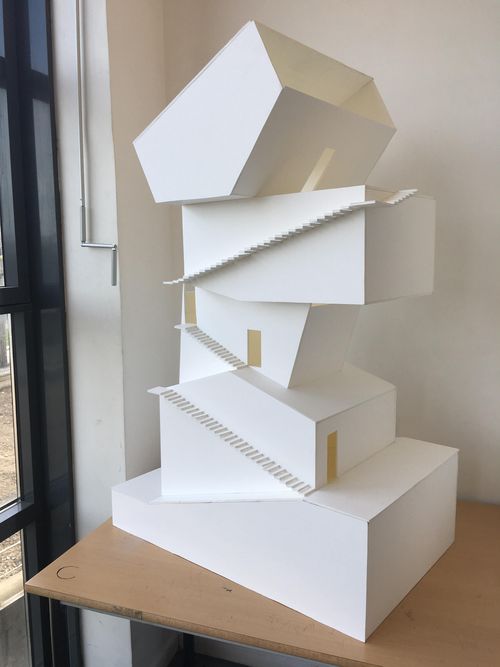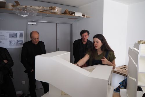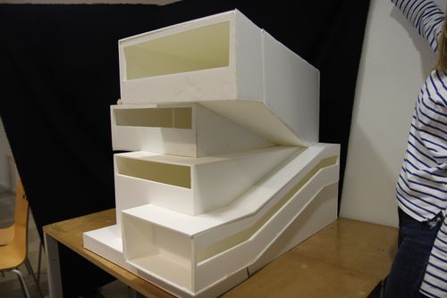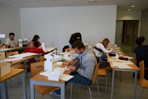 Chaque étudiant a d'abord testé plusieurs possibilités de structure en faisant des hypothèses à l'aide de maquettes au 1/100. Puis il a choisi une solution structurelle validée par Andréas Alexopoulos, enseignant ingénieur, pour passer au 1/50. La troisième séance a été marquée par le second changement d'échelle - du 1/50 au 1/20 - et toutes les modifications constructives qu'il implique.