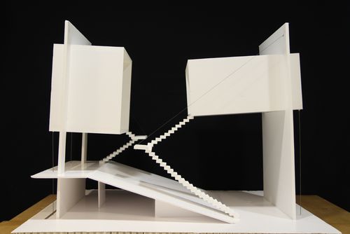 La maison nomme de manière générique à la fois l'appartement, même minuscule, comme les petits équipements (maison des syndicats, des associations, de la poésie...). Les étudiants du groupe 14 sous la direction de Richard Scoffier ont profité de cette relative indétermination pour concevoir dans les deux premiers exercices des espaces capables uniquement qualifiés par leur structure ainsi que les réseaux d'alimentation inhérents à toute construction... Dans le troisième ils ont suivi la même méthode pour concevoir, cette fois sur un sol en pente, une construction montant en rampe ou en escalier de manière continue du rez-de-chaussée au toit. Cette construction devait au moins comporter 4 espaces superposés - un accueil, un petit amphithéâtre, un foyer et un plateau de bureaux paysagés - permutables à tout moment en : entrée, séjour, salle à manger et chambre...