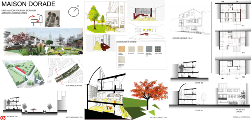 - représenter de l'architecture en plan, coupe, façade et perspective,