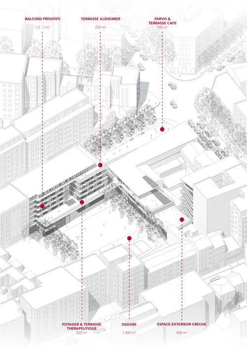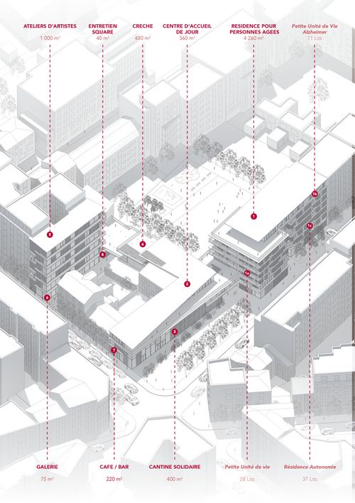 La demande de place en résidence pour personnes âgées ne cesse d’augmenter, pourtant les modèles « classiques » d’hébergement pour séniors, maisons de retraite, EHPAD (Établissement d’hébergement pour personnes âgées dépendantes), etc. sont de plus en plus remis en question et critiqués. Ces modèles ont notamment la réputation de renforcer le sentiment d’isolement de leurs habitants, par leur localisation, souvent très éloignée des centres urbains, mais aussi par leur architecture, très introvertie et repliée sur elle-même.