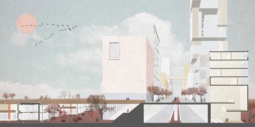 Ce procédé architectural permet de créer un lien entre le Triangle de Gonesse et sa périphérie, venant pallier à la situation d’enclavement de la parcelle.