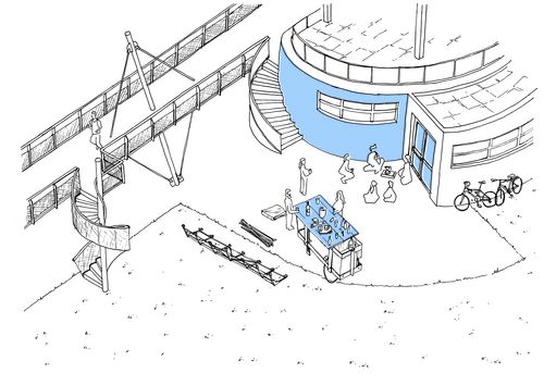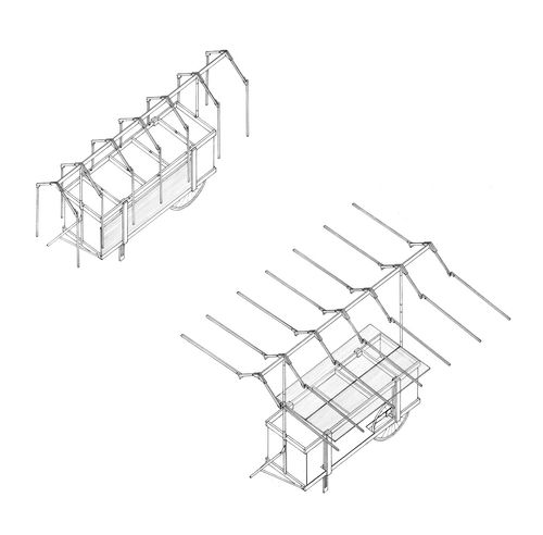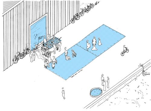 Préfabriquer, transporter et installer les projets. Utiliser un atelier mobile pour la construction. Proposer un usage le temps d'un événement. Utiliser le dessin pour représenter la situation.